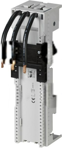 55mm adapter na szyny zbiorcze do 60mm systemu szyny zbiorczej, szyna montażowa, trzy odpowiednio dobrane przewody (AWG8 / 10mm?) umożliwiające podłączenie do aparatu łączeniowego, zastosowanie do wyłącznika ochronnego silnika PKZM4, PKE65, znamionowy prąd pracy: 63A