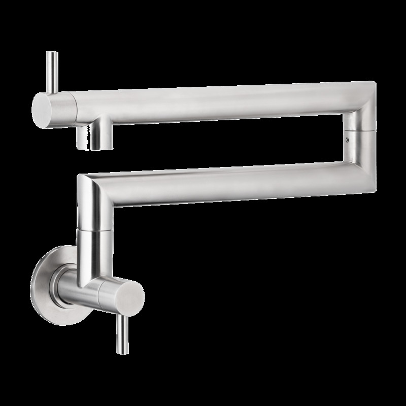 Niezwykle wygodnym rozwiązaniem kuchennym, zyskującym coraz większą popularność jest tzw. pot filler, czyli kran do napełniania garnków, montowany bezpośrednio nad kuchenką. Dzięki składanej konstrukcji pozwala umieścić wylewkę dokładnie nad każdym punktem na jej powierzchni. Umożliwia również szybkie dolewanie wody w sytuacjach, gdy zbyt duża ilość paruje podczas gotowania. Pot filler jest nie tylko funkcjonalny, ale zwraca też uwagę jakością wykończenia i dostępny jest w dwóch kolorach. Bateria jest wykonana z wysokiej jakości stali nierdzewnej, dzięki czemu charakteryzuje się odpornością na korozję. Ponadto stal nierdzewna jest łatwa w utrzymaniu czystości, a jej wygląd świetnie pasuje zarówno do nowoczesnych, jak i klasycznych kuchni. Przegubowa konstrukcja baterii sprawia, że po złożeniu zajmuje ona bardzo niewiele miejsca na ścianie zachowując przy tym duży zasięg (60 cm) po rozłożeniu.