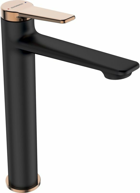 Bateria umywalkowa wysoka Kuchinox Alanis czarna / różowe złoto korek klik-klak