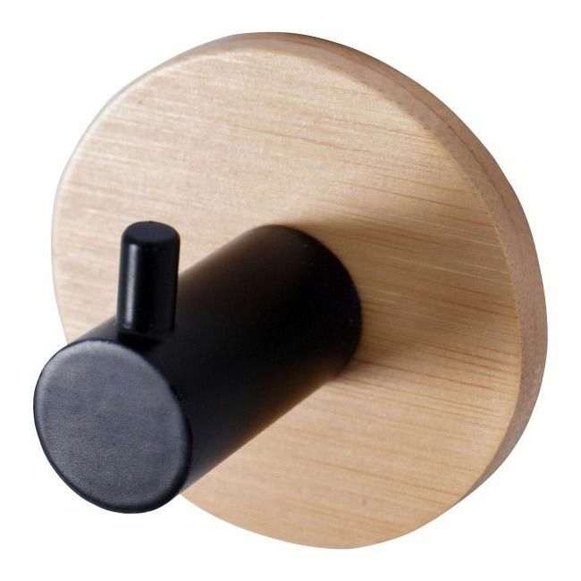 Wieszaczek pojedynczy Bisk Umbra bambus to niezastąpiony element wyposażenia każdego wnętrza. Dzięki unikalnemu połączeniu stali malowanej na czarno i bambusa, wieszaczek prezentuje się elegancko i stylowo. Doskonale sprawdza się w łazience, kuchni, czy przedpokoju, umożliwiając praktyczne zawieszenie ubrań czy ręczników. Jego prosty design oraz solidne wykonanie gwarantują trwałość i niezawodność. Szybki i łatwy montaż za pomocą dołączonej taśmy 3M.