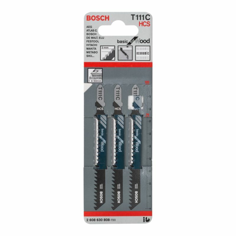 Brzeszczot do wyrzynarki T do drewna 4 - 50 mm basic for wood T111C 3 szt. BOSCH to wysokiej jakości zestaw brzeszczotów do wyrzynarki, idealny do cięcia drewna. Wyprodukowany przez renomowaną markę BOSCH PROFESSIONAL, ten brzeszczot zapewnia precyzyjne cięcia i długą żywotność. Dzięki stalowemu ostrzu o długości 100 mm i szerokości 1 mm, możesz łatwo przecinać drewno o różnej grubości i gęstości. Rozstaw zębów wynoszący 3 mm pomaga w szybkim i skutecznym cięciu, a kształt zębów stożkowy zapewnia czyste krawędzie. W opakowaniu znajdziesz 3 sztuki brzeszczotów, co pozwala na długotrwałe korzystanie z produktu. Ten zestaw brzeszczotów doskonale sprawdzi się w różnego rodzaju pracach stolarskich i majsterkowaniu. Zapewnij sobie niezawodność i precyzję dzięki brzeszczotowi BOSCH!