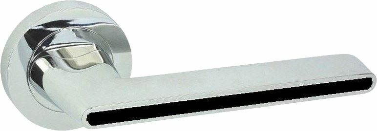 Klamka drzwiowa Onyks-R na rozecie okrągłej w kolorze chrom/czarnym wyróżnia się nowoczesnym designem, który idealnie komponuje się z nowoczesnymi wnętrzami.
