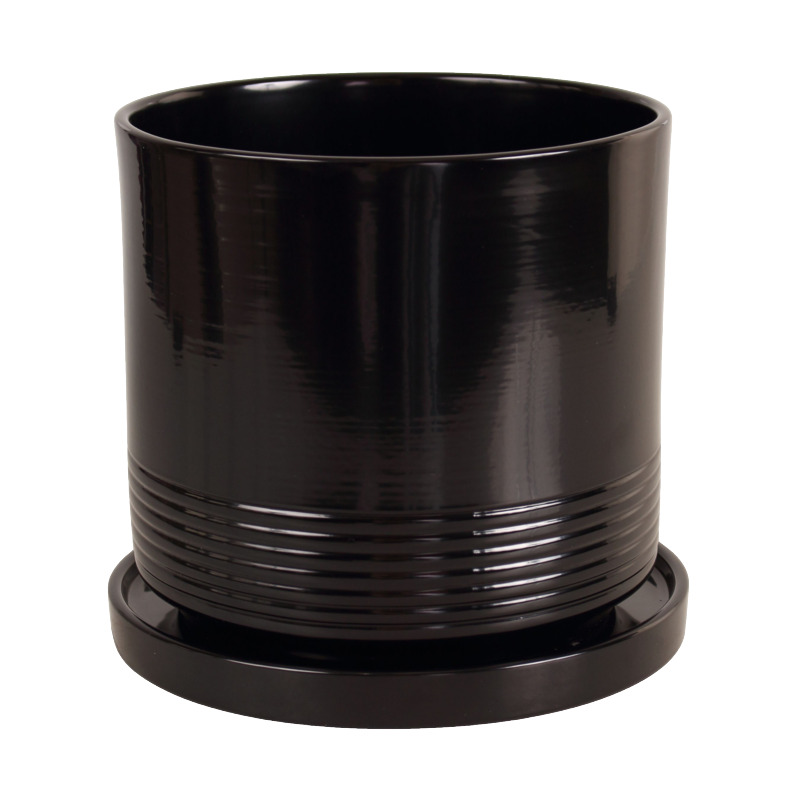 Doniczka ceramiczna z podstawką Rille śr.17cm czarna Cermax wyróżnia się eleganckim designem, który będzie doskonałym uzupełnieniem każdego wnętrza.