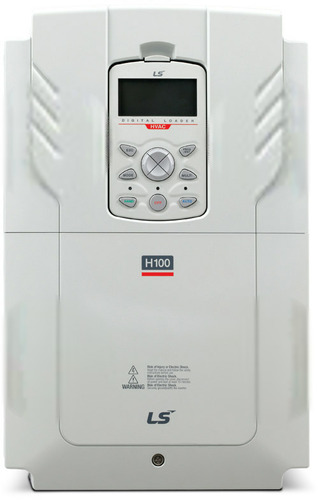 Przemiennik częstotliwości LSIS serii H100 (HVAC). Zasilanie 3x400V AC, wyjście 3x400V AC. filtr EMC C3, dławik w obwodzie DC (od 30kW), klawiatura LCD HVAC , port USB do połączenia z PC, zegar RTC - harmonogramy.Obudowa IP20. Sterowanie wektorowe. Makra aplikacyjne i szereg funkcji dedykowanych dla HVAC. Bardzo mały gabaryt, instalacja jeden obok drugiego. Komunikacja Modbus RTU/RS485, Metasys N2 i Bacnet MS/TP