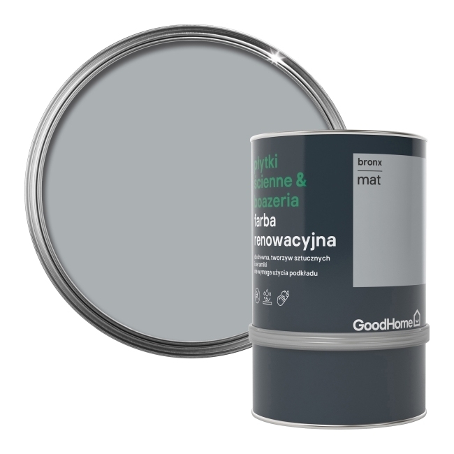 Kontynuacja opisu Farba GoodHome Płytki bronx mat 0,75 l. Produkt ten cechuje się nie tylko wysoką jakością, ale także trwałością. Doskonale kryje powierzchnię, dzięki czemu uzyskujemy równomierny i estetyczny efekt. Farba jest łatwa w aplikacji i szybko schnie, co pozwala na szybkie zakończenie remontu. Dzięki matowemu wykończeniu wnętrze nabiera eleganckiego charakteru. Farba GoodHome Płytki bronx mat 0,75 l jest idealna do malowania płytek ścian oraz boazerii. Jej pojemność 0,75 l zapewnia dużą wydajność, a unikalna formuła sprawia, że produkt ten jest niezwykle trwały i odporny na uszkodzenia. Farba utwardza się całkowicie po upływie 10 dni, dlatego w tym okresie należy zachować szczególną ostrożność.