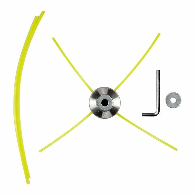 Długość żyłki w głowicy wynosi od 200 do 430 mm, co pozwala na dokładne dostosowanie do indywidualnych potrzeb użytkownika. Zestaw zawiera cztery wysokiej jakości żyłki wykonane z nylonu, które zapewniają trwałość i wytrzymałość podczas koszenia trawy. Dodatkowo, w komplecie znajduje się klucz imbusowy ułatwiający montaż i wymianę żyłki.