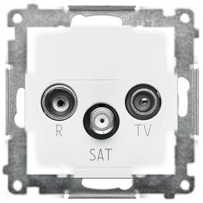 Gniazdo antenowe R-TV-SAT końcowe/zakończeniowe (moduł). 1x Wejście: 5 MHz÷2,4 GHz: Biały mat, SIMON55 TASK.01/111