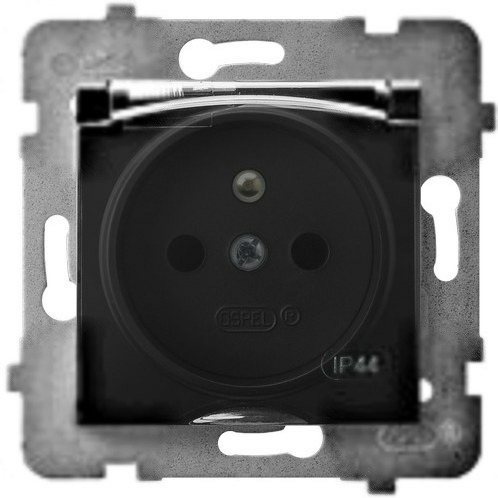 Gniazdo bryzgoszczelne z uziemieniem IP-44 wieczko przezroczyste, czarny mat ARIA GPH-1UZ/M/33/D