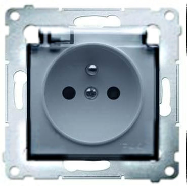 Gniazdo do wersji IP44 przesłona styków z uszczelką ramki . klapka transparentna, srebrny mat Simon54