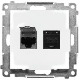 Gniazdo komputerowe podwójne RJ45 kategoria 6, z przesłoną przeciwkurzową (moduł): Biały mat, SIMON55 T62.01/111