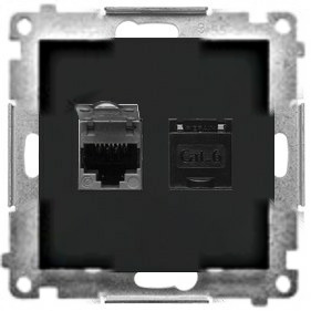 Gniazdo komputerowe podwójne RJ45 kategoria 6, z przesłoną przeciwkurzową (moduł): Czarny mat, SIMON55 T62.01/149
