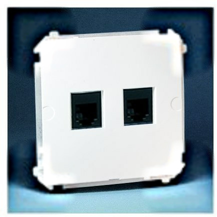 Gniazdo komputerowe RJ45, kategoria 6, podwójne z przesłoną przeciwkurzową (moduł), montaż na łapki lub wkręty, białe