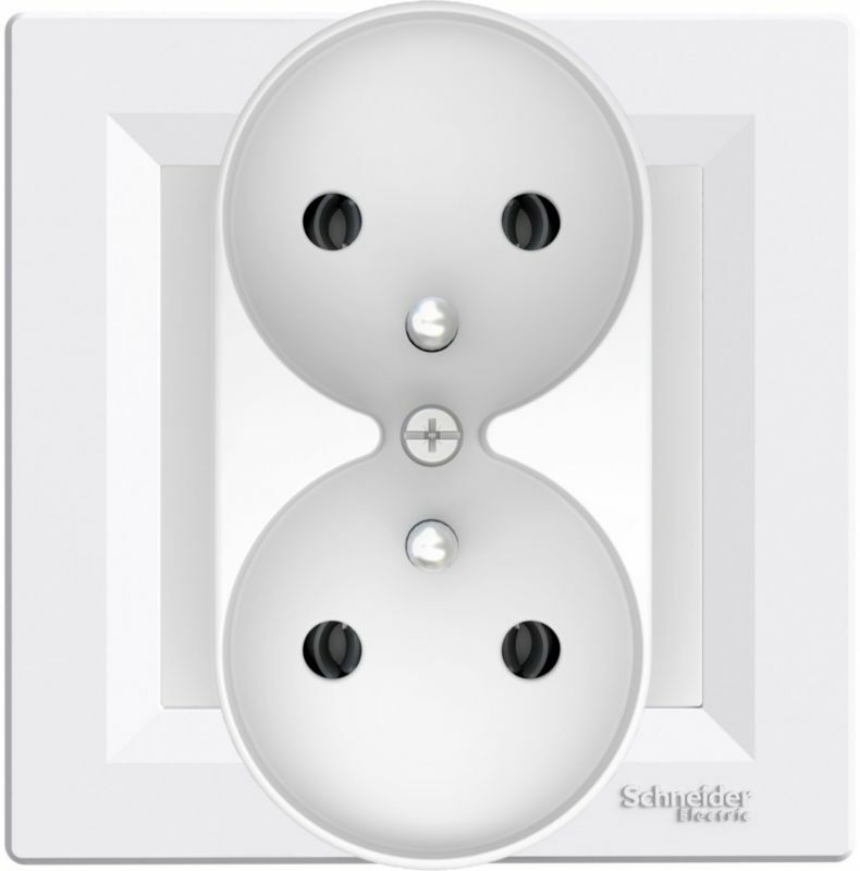 Gniazdo podwójne Schneider Electric Asfora z uziemieniem do ramki białe