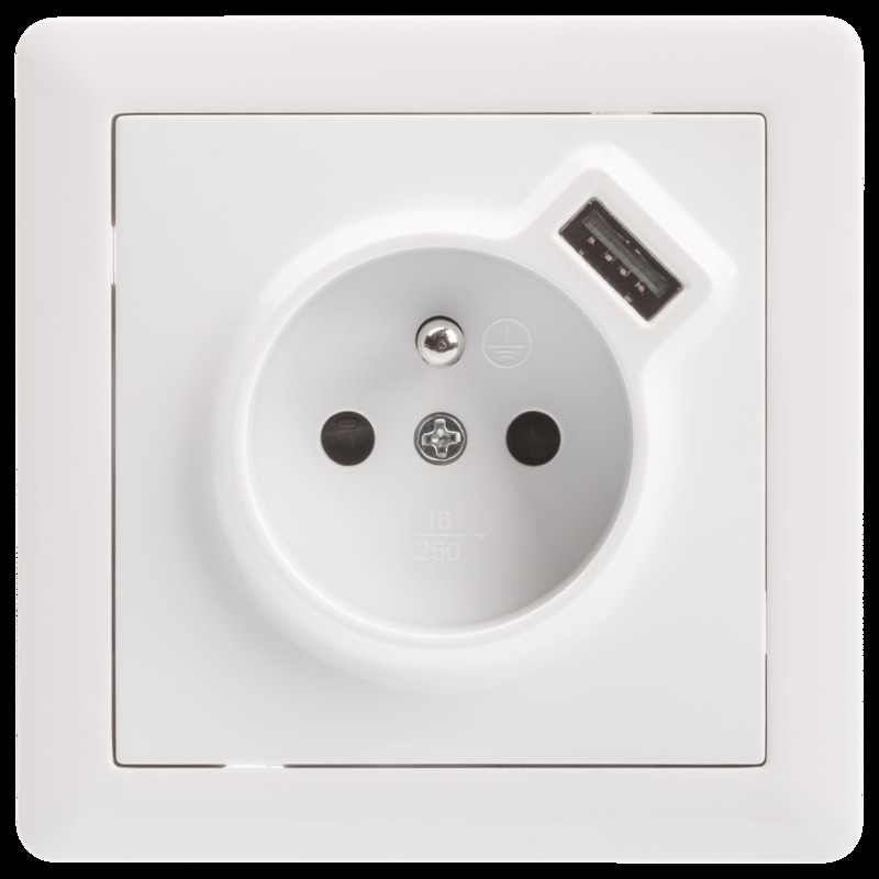 Gniazdo pojedyncze SLIM Z USB Biały LEXMAN