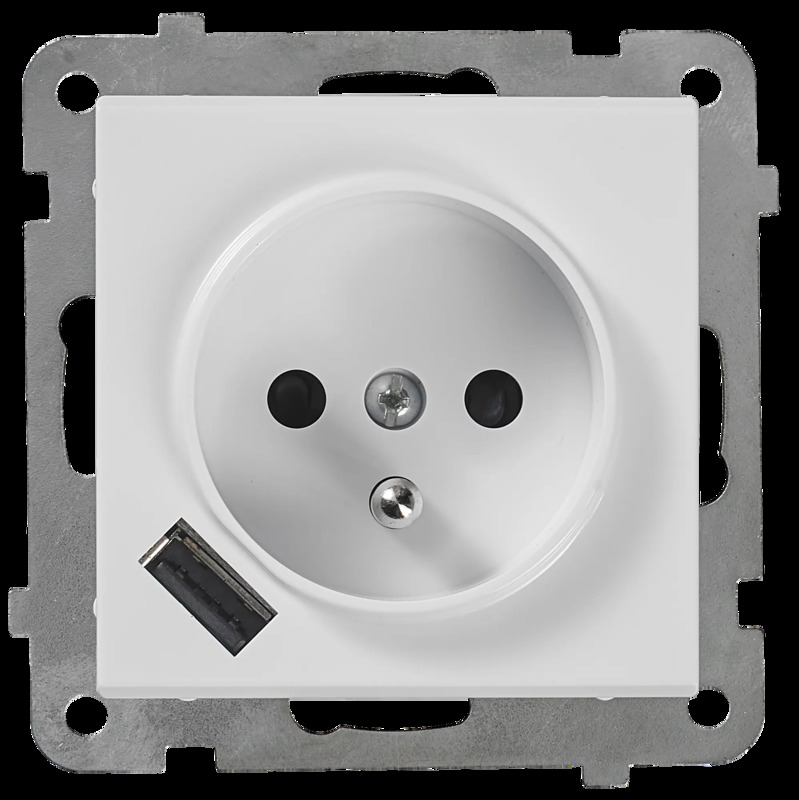Gniazdo pojedyncze z USB SONATA Biały OSPEL