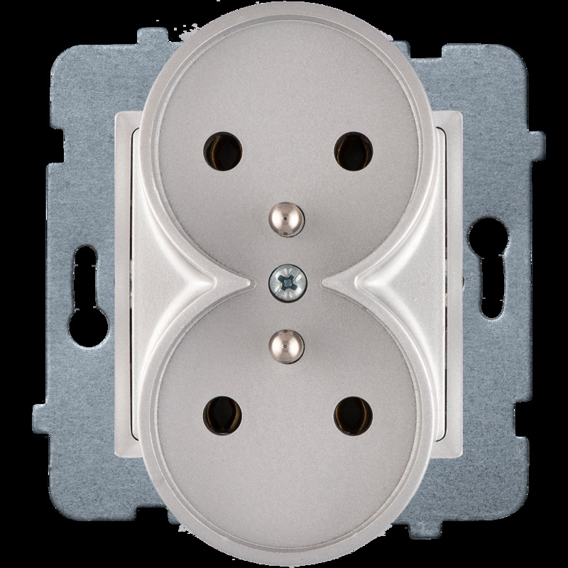 Gniazdo Rosa podwójne z uziemieniem srebro