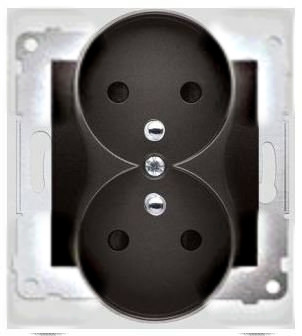 Gniazdo wtyczkowe z uziemieniem z przesłonami podwójne do RAMEK NATURE (moduł) 16A, 250V AC, zaciski śrubowe srebrny matowy Simon54