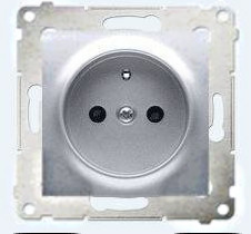 Gniazdo z uziemieniem i przesłonami, srebrny mat Simon54