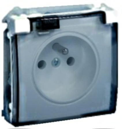 Gniazdo z uziemieniem, pojedyncze, klapka dymna/transparentna IP44, BMGZ1B.01/11a Basic Moduł biały BMGZ1B.01/11A