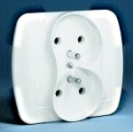 Gniazdo z uziemnieniem podwójne z przesłoną AGZ2Z/11 Akord biały