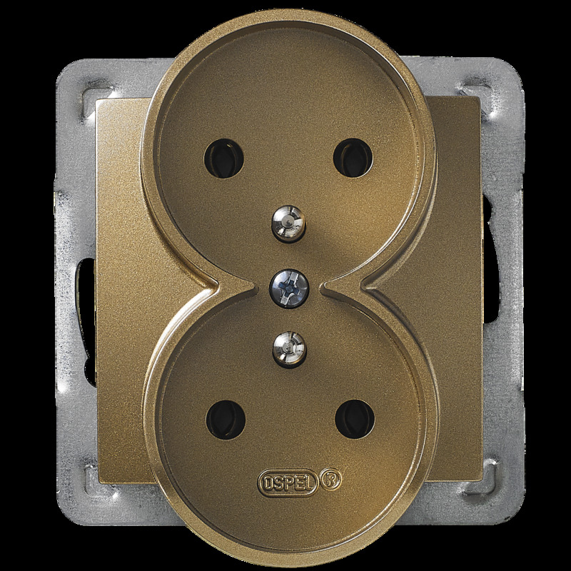 Gniazdo podwójne IMPRESJA Złoty OSPEL to połączenie eleganckiego designu z wysoką funkcjonalnością. Dzięki podwójnemu gniazdu zasilającemu, można podłączyć do niego dwa urządzenia jednocześnie, co sprawia, że jest to idealne rozwiązanie do biur oraz salonów.