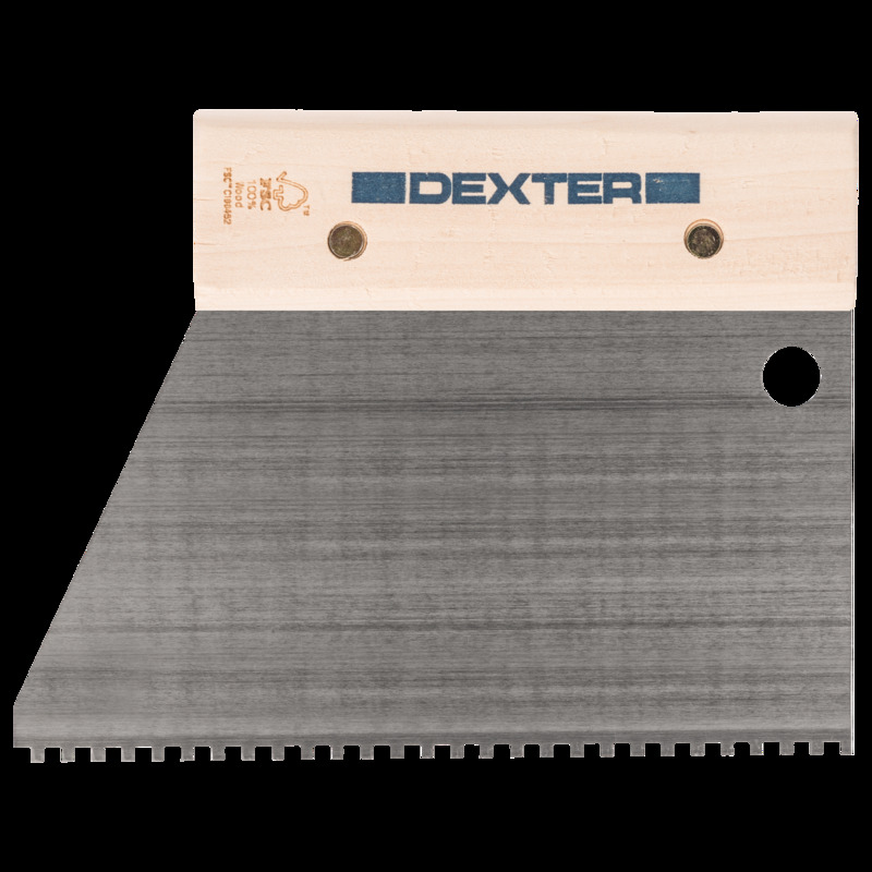 Dzięki ergonomicznemu uchwytowi z drewna oraz specjalnie zaprojektowanemu kwadratowemu ostrzu, nakładanie kleju stanie się przyjemniejsze i bardziej efektywne. Produkt marki DEXTER to gwarancja profesjonalnego wykończenia.