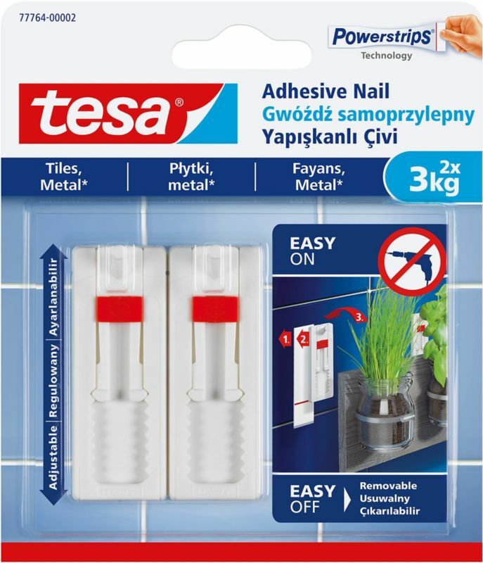 Gwoździe samoprzylepne Tesa regulowane do płytek udźwig 3 kg 2 szt. to idealne rozwiązanie dla osób poszukujących prostego sposobu na montaż różnych elementów na ścianach.
