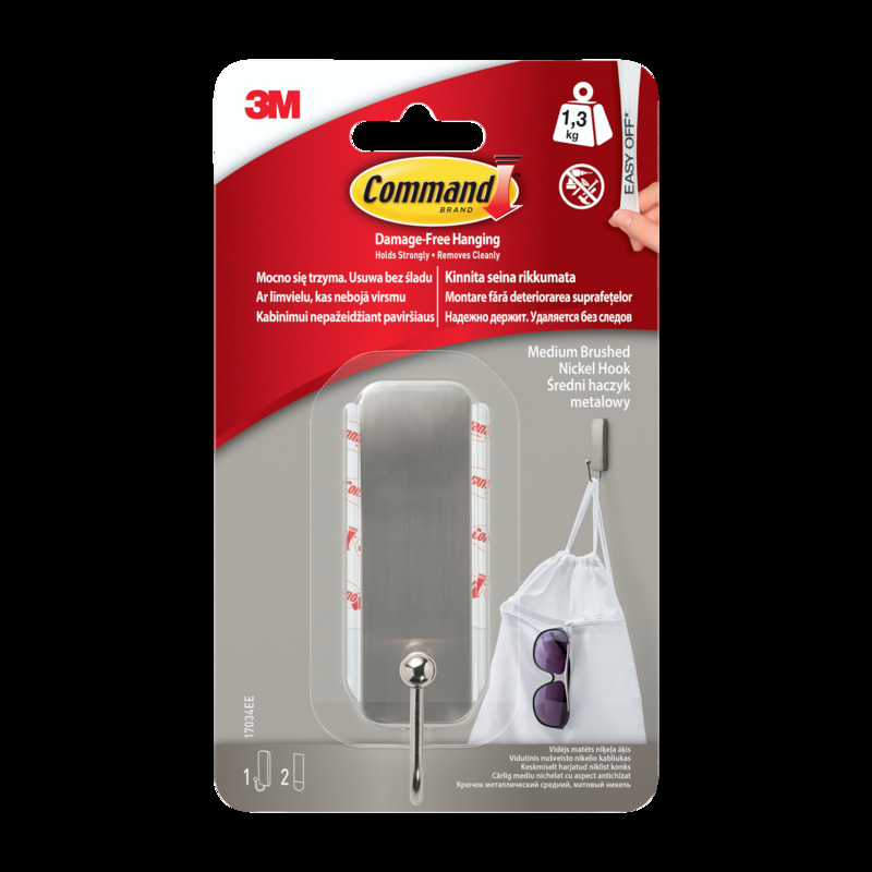 Dzięki wykonaniu z najwyższej jakości stali nierdzewnej, haczyk metalowy średni Command jest odporny na działanie czynników zewnętrznych, co sprawia, że będzie pełnił swoją funkcję przez wiele lat. Maksymalne obciążenie 1.3 kg pozwala na zawieszenie różnych przedmiotów, zapewniając Tobie praktyczne rozwiązanie w codziennym użytkowaniu.