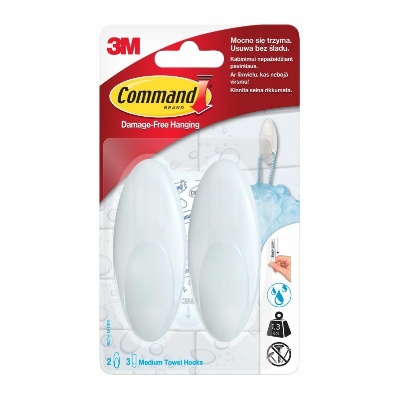 Haczyki samoprzylepne do łazienki Command udźwig do 1,3 kg 2 szt.