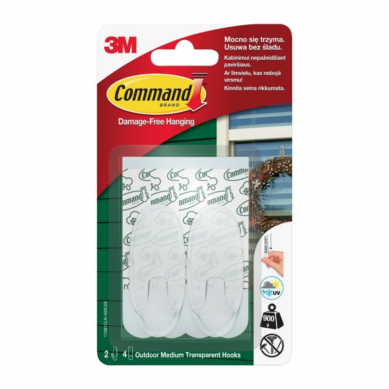 Dzięki łącznej liczbie 4 średnich haczyków w opakowaniu, można łatwo rozłożyć udźwig na kilka przedmiotów i zapewnić im stabilne zawieszenie. Transparentne tworzywo sztuczne doskonale komponuje się z różnymi kolorami ścian i nie rzuca się w oczy. Haczyki Command są niezwykle łatwe w użyciu - wystarczy odtłuścić powierzchnię, przykleić pasek do haczyka, usunąć zabezpieczenie i przymocować do ściany, delikatnie dociskając przez kilkadziesiąt sekund. Odpowiednie do zastosowania na różnorodnych powierzchniach, od szkła po pomalowane drewno, gwarantują trwałe i bezpieczne zawieszenie przedmiotów.