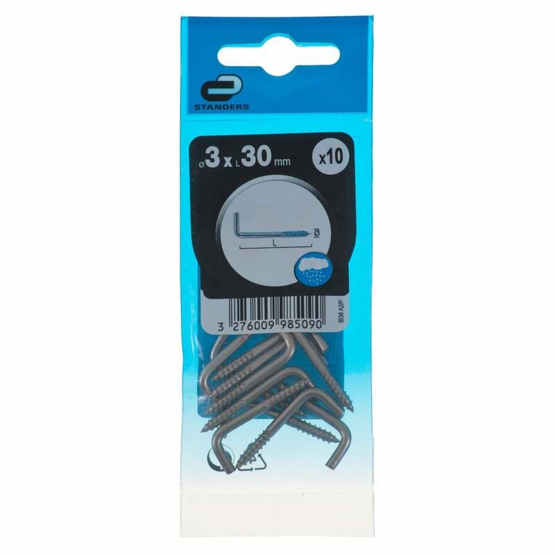 Hak śrubowy do przykręcania 3 x 30 mm 10 szt. Standers