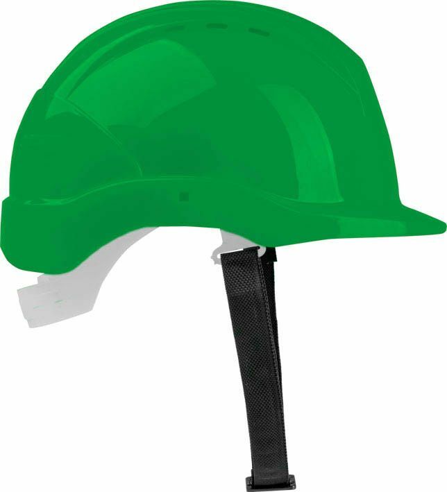Kask budowlany zielony marki Drel posiada regulowany pasek podbródkowy, dzięki czemu idealnie dopasowuje się do różnych wielkości głów. Norma EN397 gwarantuje zgodność z normami bezpieczeństwa, a trwały materiał HDPE chroni głowę przed urazami i uszkodzeniami.
