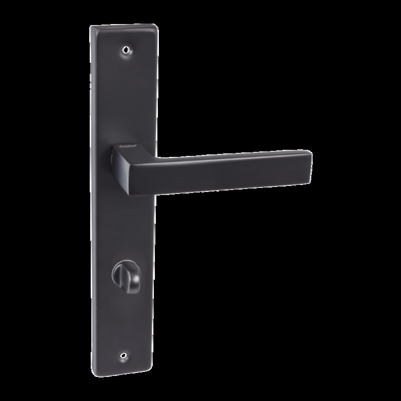 Klamka do drzwi wewnętrznych z długim szyldem do wc Qubik Czarna