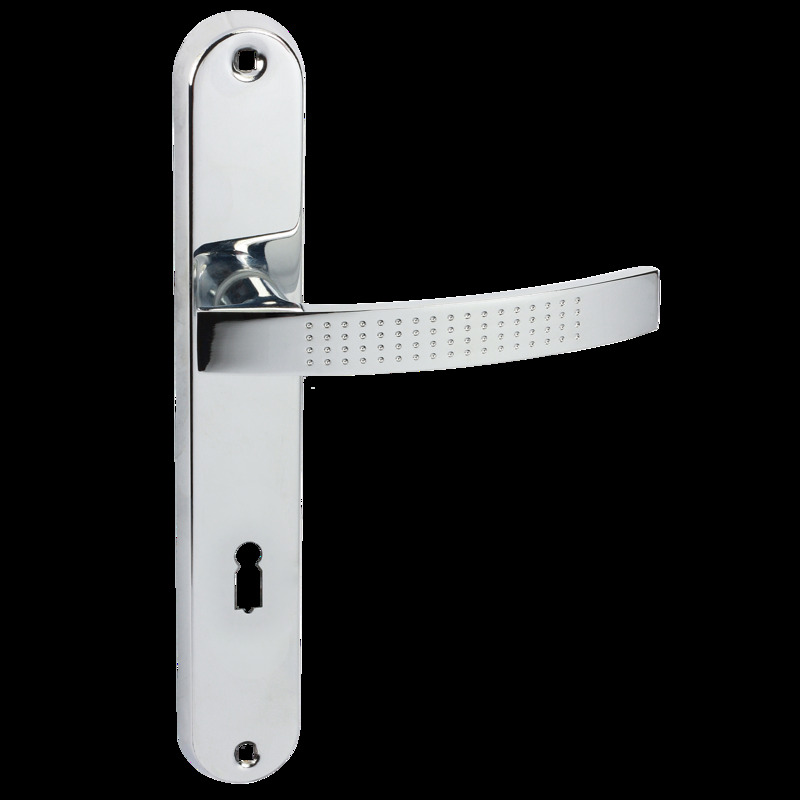 Klamka do drzwi wewnętrznych z długim szyldem pod klucz Alma Chrom Domino
