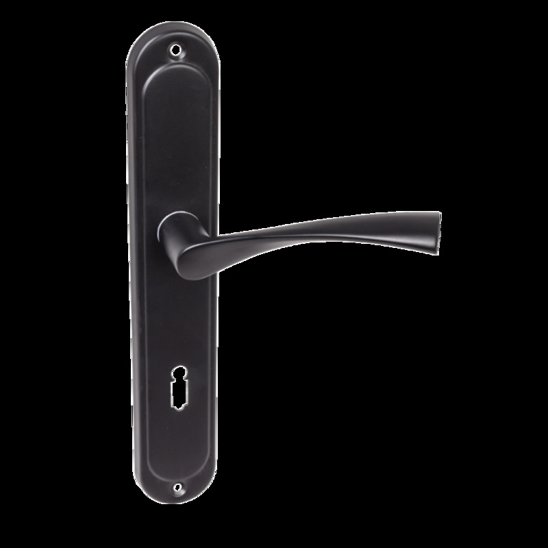 Klamka do drzwi wewnętrznych z długim szyldem pod klucz Romana Czarna