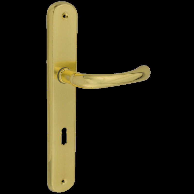 Klamka do drzwi wewnętrznych z długim szyldzie pod klucz Maja Złota