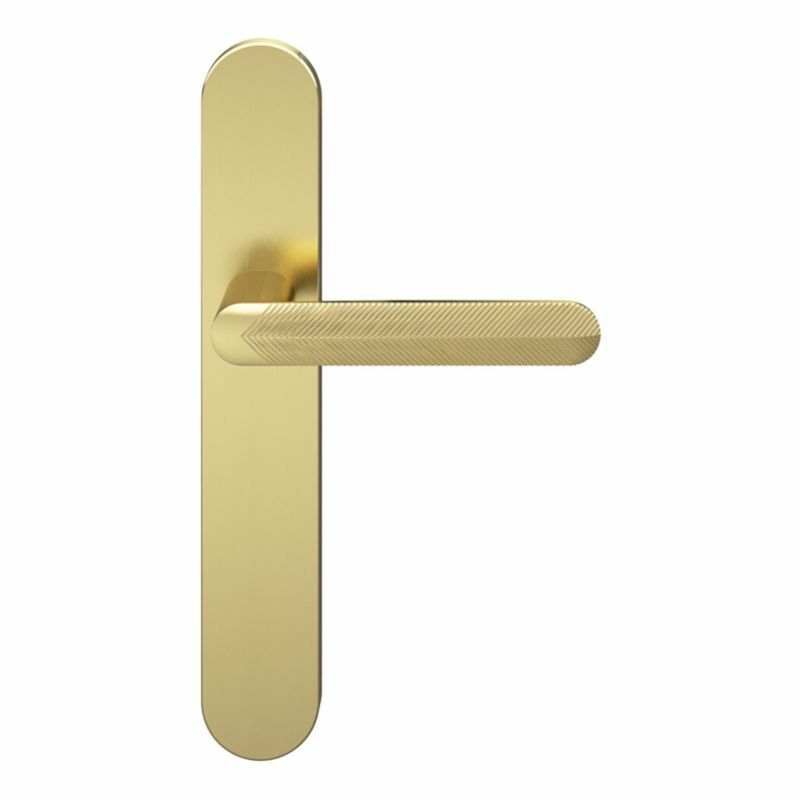 Klamka GoodHome Feather szyld szczotkowany mosiądz