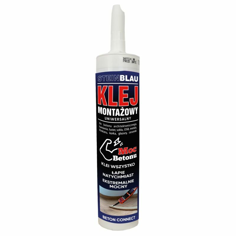 Klej montażowy Beton Connect 290 ml to innowacyjny produkt, który umożliwia montaż elementów i płyt z betonu architektonicznego, kamienia, ceramiki, gresu i innych materiałów zarówno na ścianach, podłogach, tarasach, jak i na podłożach innych niż mineralne. Dzięki swojej wysokiej wydajności oraz maksymalnej grubości warstwy, klej ten sprawdzi się idealnie nawet przy montażu cięższych elementów o dużych rozmiarach. Metoda aplikacji przy użyciu pistoletu do kartuszy sprawia, że praca jest szybka i precyzyjna, a specjalna formuła kleju zapewnia trwałość i wytrzymałość połączeń.