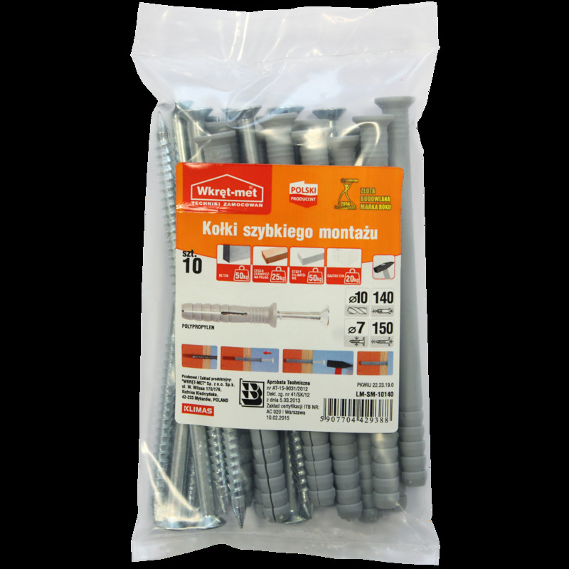 Kołek do szybkiego montażu 10 x 140 mm 10 szt. Wkręt-met to gwarancja wyjątkowej jakości i trwałości. Dzięki starannemu wykonaniu oraz najlepszym materiałom, produkt ten spełnia oczekiwania nawet najbardziej wymagających klientów.