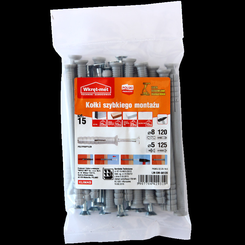 Kołek do szybkiego montażu 8 x 120 mm 15 szt. Wkręt-met