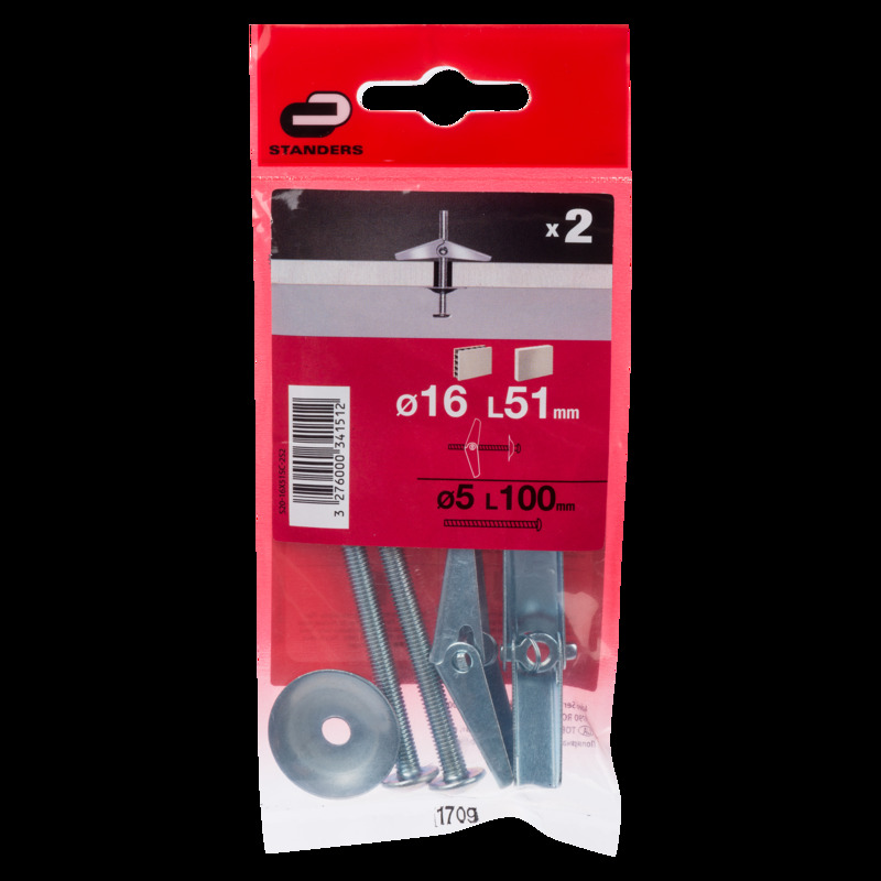 Kołek przechylny 16 x 51 mm PZ 2szt. Standers to gwarancja niezawodności i trwałości. Produkt ten, dzięki doskonałym parametrom technicznym oraz solidnemu wykonaniu, zapewnia stabilność i bezpieczeństwo podczas montażu konstrukcji wewnętrznych. Galwanizowane wykończenie chroni przed rdzą i korozją, co sprawia, że kołek zachowuje nieskazitelny wygląd na długi czas.