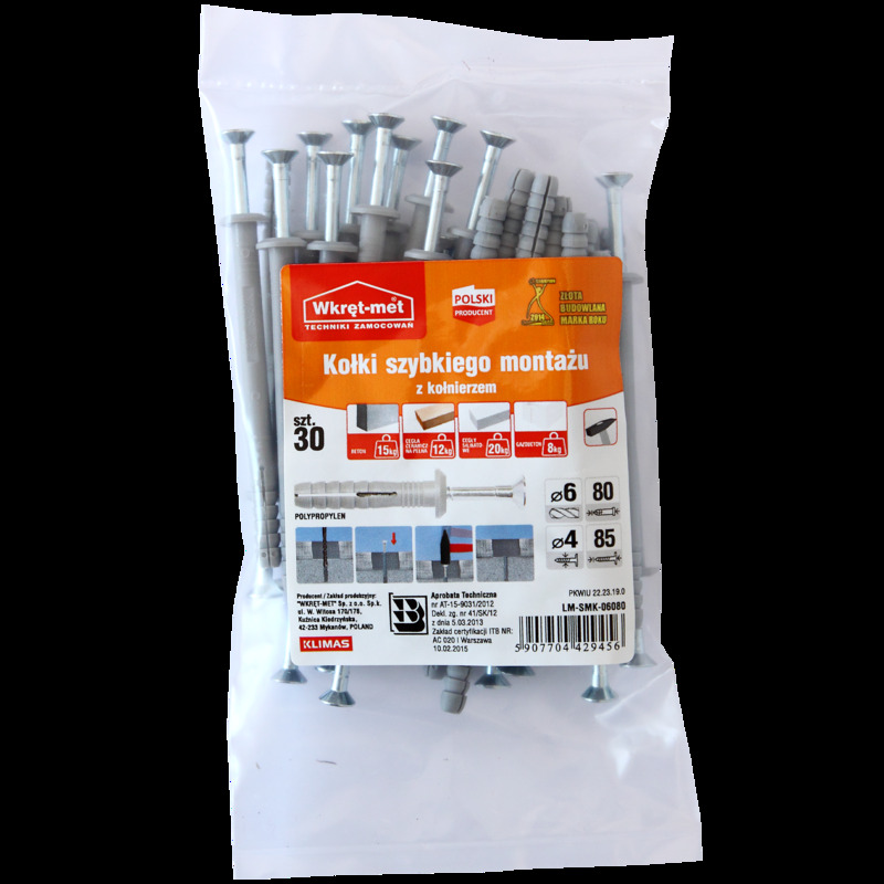 Kołek szybkiego montażu z kołnierzem 6 x 80 mm 30 szt. Wkręt-met