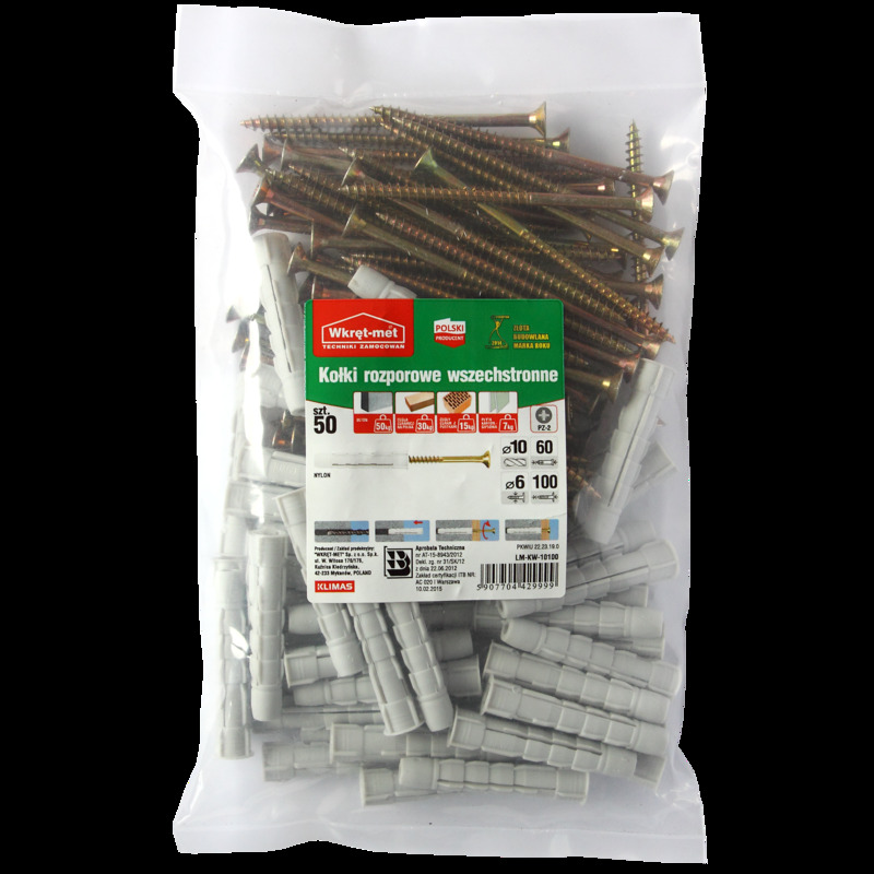 Kołek uniwersalny 10 x 100 mm 50 szt. Wkręt-met to produkt, który gwarantuje solidne połączenie elementów konstrukcyjnych. Jego niezawodność i precyzja sprawią, że montaż będzie szybki i łatwy.