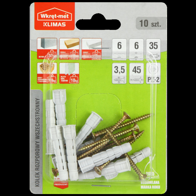 Kołek uniwersalny 6 x 45 mm 10 szt. Wkręt-met