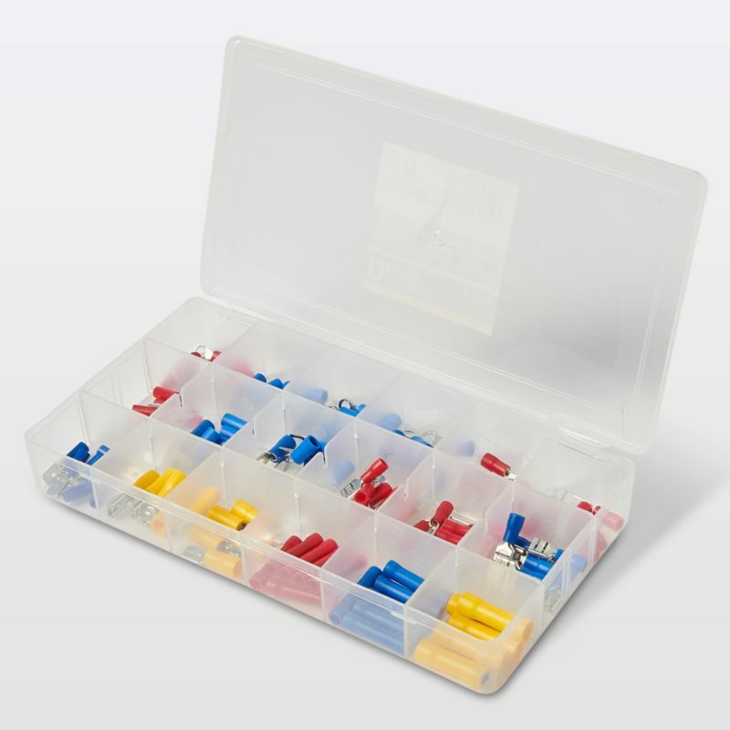 Konektory Diall mix 100 szt. umożliwiają szybkie i wygodne połączenia przewodów o różnych przekrojach. Dzięki nim z łatwością skompletujesz instalację elektryczną, zapewniając niezawodne połączenia.