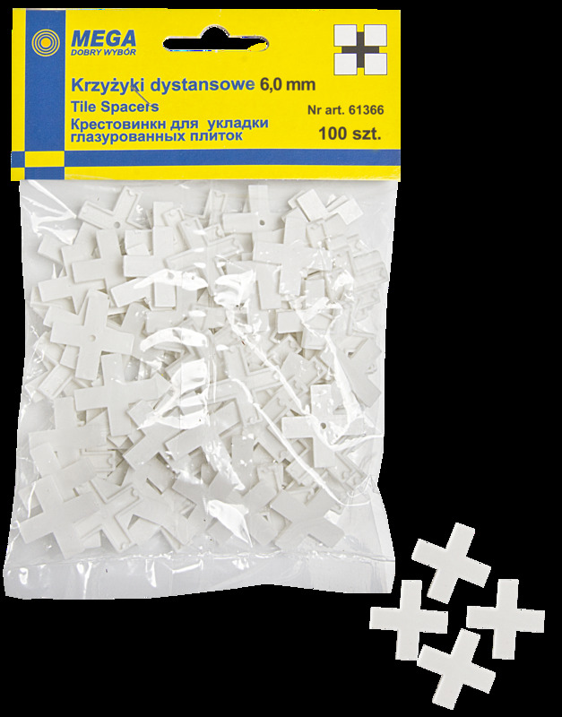 Krzyżyki 6,0 MM 100 SZT MEGA to idealne rozwiązanie dla profesjonalistów i amatorów remontów ceramicznych. Wykonane z wysokiej jakości polipropylenu, gwarantują trwałość i stabilność dzięki zalecanej szerokości spoiny wynoszącej 6 mm. Dzięki swojemu kształtowi X, krzyżyki są łatwe w ułożeniu, a ich biały kolor pasuje do wielu aranżacji wnętrz. Niezawodne i przydatne zarówno podczas prac wewnętrznych, jak i zewnętrznych. Produkt marki MEGA, wielokrotnego użytku, zapewniający precyzyjne dopasowanie płytek. W opakowaniu znajduje się aż 100 sztuk krzyżyków, a 2-letnia gwarancja daje pewność ich jakości.