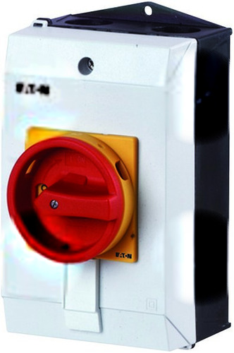 Wyłącznik główny wg IEC/EN60947, wielkość konstrukcyjna T0, w obudowie natynkowej, klasa ochrony IP65 z czerwoną rękojeścią i żółtym wieńcem blokującym zamykanie w położeniu zerowym, pomiarowy prąd stały Iu 20A, znamionowe napięcie pracy Ue 690V, dostępne akcesoria zgodnie z danymi katalogu łączników krzywkowych T. Konstrukcja ogólna: obudowa natynkowa z izolacją, montaż, montaż centralny, montaż pośredni montaż rozdzielacza IVS.