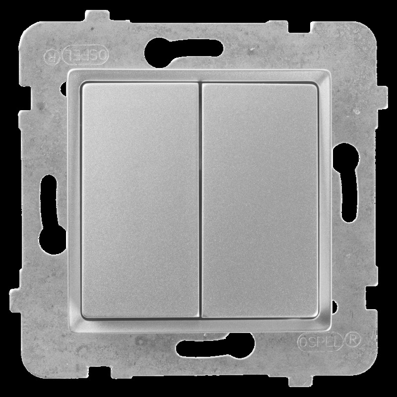 Włącznik podwójny ROSA to połączenie nowoczesnego designu z funkcjonalnością. Elegancki srebrny kolor sprawia, że staje się on stylowym dodatkiem do każdego wnętrza.
