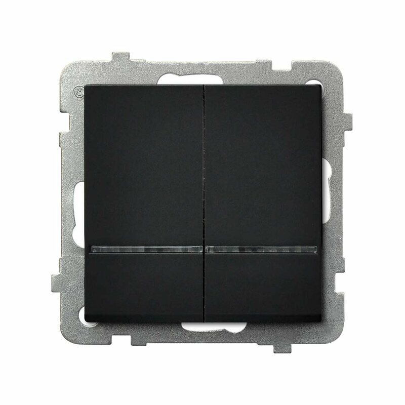 Łącznik dwugrupowy świecznikowy z podświetleniem niebieskim, czarny metalik SONATA