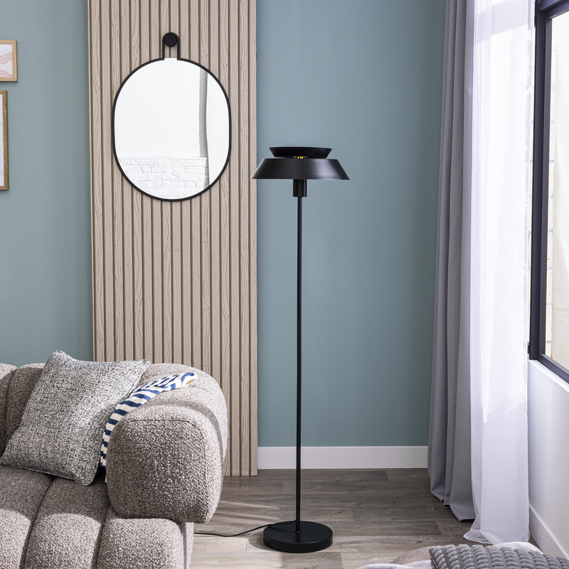Lampa podłogowa Dulcie, o eleganckim wzornictwie i modnym stylu, emanuje nowoczesną elegancją. Charakteryzuje się matowym, czarnym, metalowym wykończeniem i ma wysokość 140 cm, klosz o średnicy 35 cm, podstawę o długości 25 cm i przewód o długości 250 cm, co ułatwia montaż. Lampa podłogowa jest przeznaczona do żarówki E27, która nie jest dołączona do zestawu, co pozwala na indywidualne dopasowanie oświetlenia. Posiada również wygodny włącznik/wyłącznik nożny. Ta lampa podłogowa to idealny dodatek do nowoczesnego salonu, eleganckiej sypialni lub stylowego biura domowego. W ramach zaangażowania marki Inspire w ekologię, lampa podłogowa Dulcie objęta jest 5-letnią gwarancją i została zaprojektowana z myślą o naprawie, co czyni ją zrównoważonym wyborem dla Twojego domu.